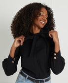 The timeless black colour complements various wardrobe pieces, from our tailored She Wears the Trousers to She’s in Charge pencil skirt, offering versatility and endless styling options. The tailored fit provides a flattering silhouette, while the delicate bow detail adds a feminine and professional touch. Whether you're aiming for a polished corporate look or a refined business casual ensemble, this blouse is a must-have for every professional woman.